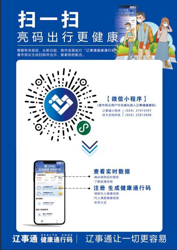2.考生进入校园须凭“辽事通”app或微信小程序申领的健康通行码“绿码”入校参加考试。请大家提前下载APP,并在入校时提前准备好二维码备查。
