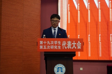 大会在雄壮的国歌声中开幕。第九届研究生会主席团执行主席公共卫生学院研究生张金龙代表第四届研究生委员会作了题为《担时代之责锤炼本领,扬青春之帆接续奋斗——为加快建设国内先进、国际知名的医科大学贡献青春智慧与力量》工作报告。