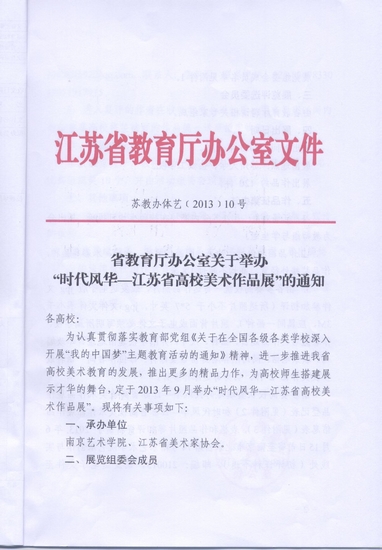 江苏省教育厅办公室关于举办“时代风华--江苏省高校美术作品展“的通知
