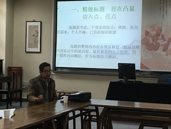 一份完美的国家社科项目申报书应该具备怎样的特色、怎样的申报书才能在众多项目中脱颖而出、如何向专家评委展现申报的核心思想……3日下午,南京大学新闻与传播学院陈堂发教授来到我院砚湖书院,与众多青年教师分享了自己关于“国家社科项目申报的几点感想”。这也是我院青年教师学术沙龙的第六期学术交流。