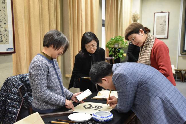 艺术学院党委副书记(主持工作)张钟勤老师也来到现场,与学员们共同感悟书画创作中的“廉”文化。她在致辞中,充分肯定了砚湖书院在“12.9国际反腐败日”开展“以笔墨为器,书写廉洁”主题教育活动的意义。防范和打击腐败是全世界的共同事业,我党历来重视预防和惩治腐败,今年学校以召开反腐倡廉专题党课为标志,启动了“清廉南航”宣传教育周活动,常态化、集中式的廉洁教育氛围已然逐步形成。砚湖书院的师生们是校园廉洁文化建设的积极参与者,自书院成立以来,累计有36个部门755人次教职工来到书院学习,共创作书画作品3800余幅,丰富了教职工文化生活,也为校园廉洁文化的建设提供了一个新的载体。她祝愿老师们能永葆书画热情,创作精品,共同为致力营造崇廉尚俭的校园文化生态贡献力量。