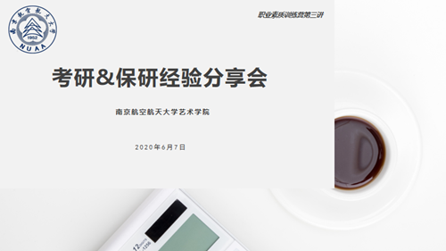 6月7日,艺术学院开展了职业素质训练营第三讲——考研&保研经验分享会。本次讲座延续了5月24日学院召开的就业工作动员会的主旨,邀请艺术学院近几年来保研或考研成功的学生,与学院有读研意向的同学进行经验分享与交流,为他们接下来的升学规划做专业切实的指导。