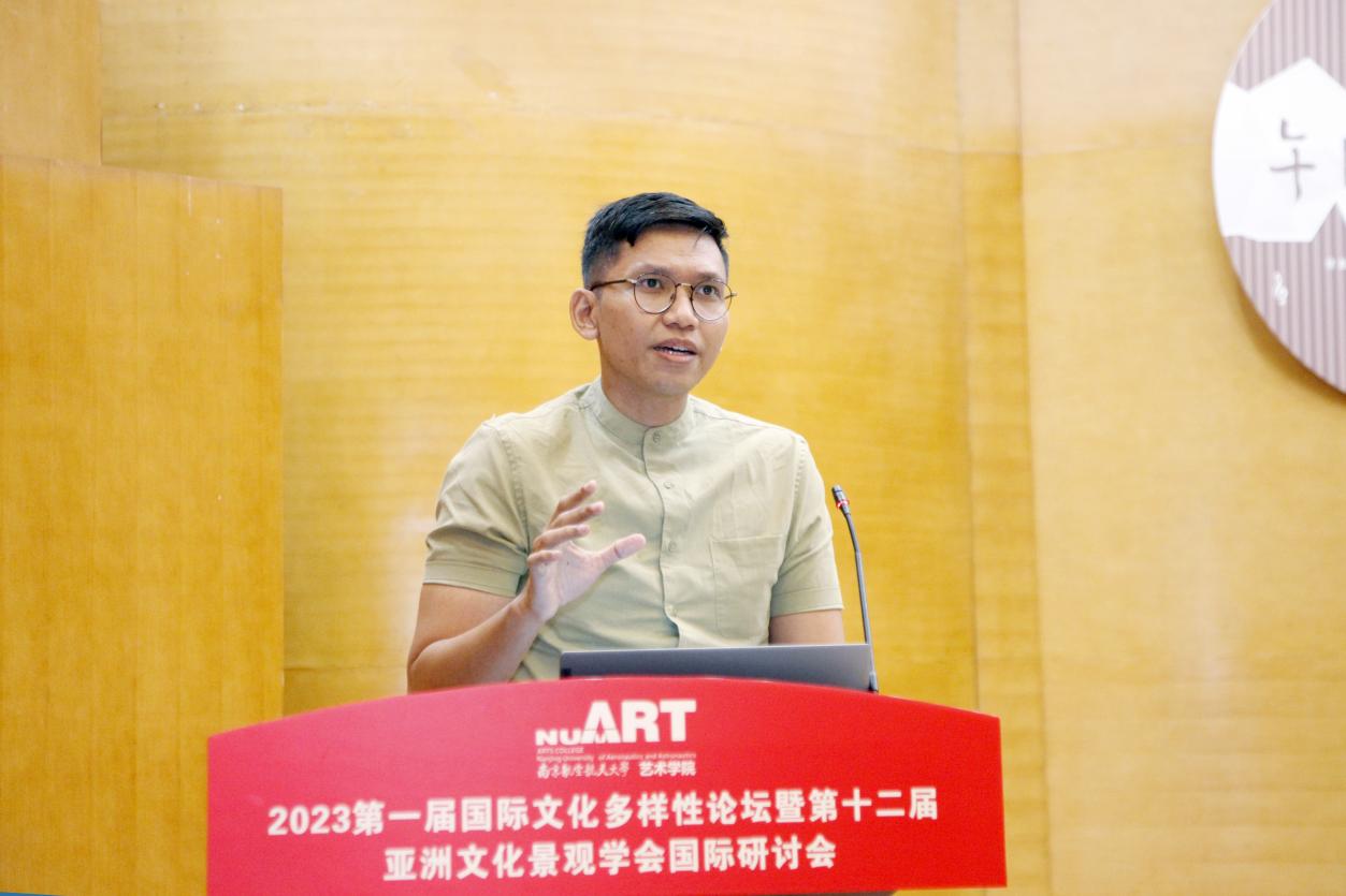6月16日-17日,2023年第一届国际文化多样性论坛暨第十二届亚洲文化景观学会国际研讨会在我校艺术学院举行。本次研讨会聚焦于“国际文化多样性”,来自韩国、泰国、印度尼西亚等多名海内外专家学者围绕论坛主题深入探讨交流,旨在繁荣和传播文化,促进不同文明之间的交流交融与互学互鉴,为保护国际文化多样性做出贡献。受邀专家学者、南京航空航天大学国际合作处副处长沈敏、艺术学院院长板俊荣、美术系系主任李伟、美术系副教授张春华、美术系副教授成乔明及学生代表参加了此次国际会议。会议以线上线下相结合的方式开展。艺术学院副教授千炫珍担任现场主持。艺术学院褚儒老师担任线上主持。