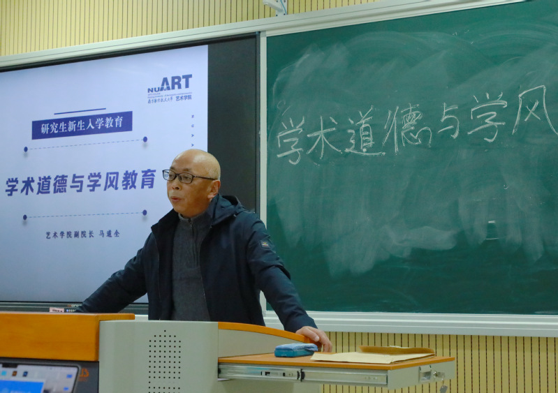 为进一步加强研究生的学术道德和学风教育建设,营造健康的学术氛围,11月20日晚7点,艺术学院副院长马道全在209教室为2023级全体研究生召开以“学术道德与学风教育”为主题的研究生新生入学教育学术讲座,由艺术学院辅导员黄琳涵主持。