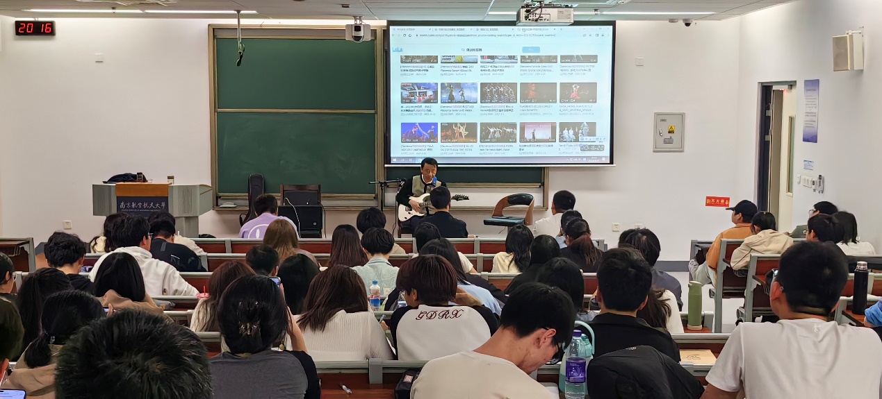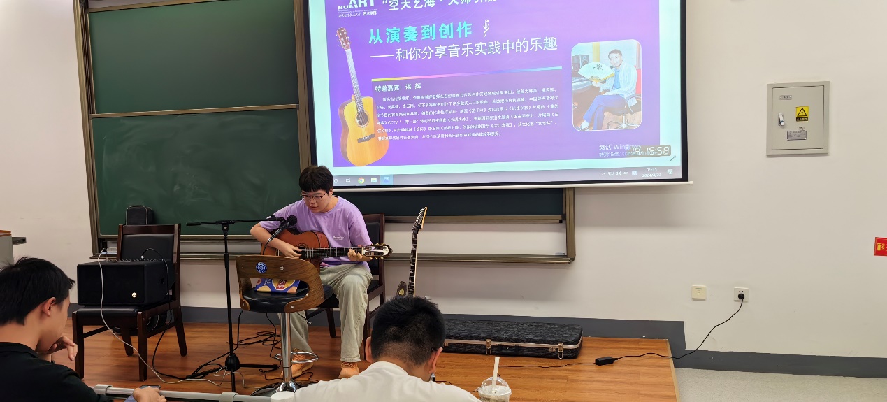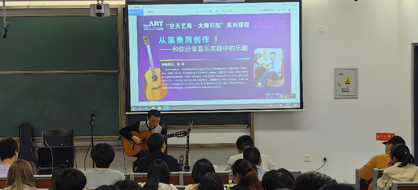 4月23日晚18:45,著名吉他演奏家、作曲家湛辉先生应邀在我校天目湖校区举办了主题为“从演奏到创作”的美育分享活动,深受同学们欢迎。