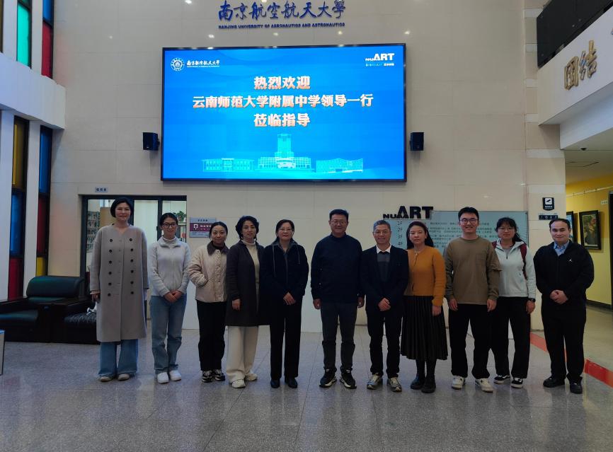 为深化大中衔接,推动拔尖创新人才贯通培养,3月21日,云南师范大学附属中学课程建设中心主任付加国一行应邀到访南京航空航天大学艺术学院调研交流。双方围绕招生政策优化、大中课程衔接及协同育人机制建设展开深入探讨。艺术学院党委书记张钟勤、院长板俊荣、副院长朱琰陪同调研。
