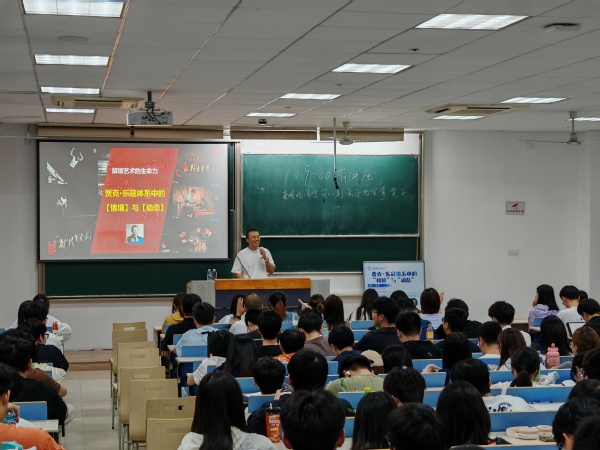 艺术学院院长板俊荣教授,著名话剧表演艺术家、国家一级演员、原南京艺术学院戏剧与影视学院院长蔡伟教授,艺术学院青年教师李子轶等嘉宾莅临现场。D1102教室座无虚席,近300名师生共同聆听了这场启迪人心的艺术盛宴。