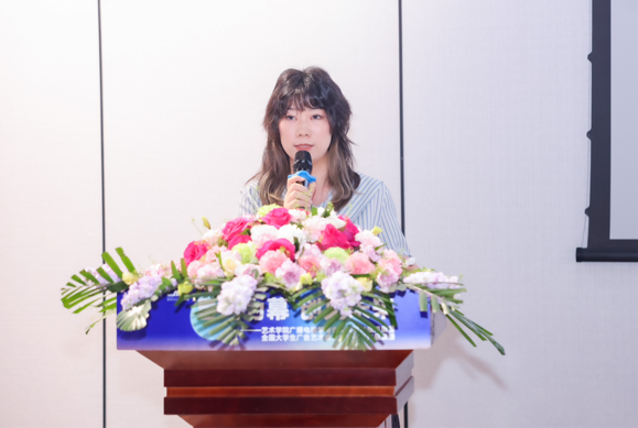 开幕式上,广播电视学专业负责人蔡雁彬副教授为大家具体介绍了专业的实践教学情况,她表示本次展会以“星河为幕”将艺术与科技深度融合,包含“以艺术之名:图文设计中的匠心突围”、“以新闻之名:融合报道的破界实践”、“以影像之名:社会观察的先锋实验”三大板块,涵盖广告创作、深度报道、实验影像及社会实践等多元形态,将学院近年来在社会竞赛、实践教学中的成果以全新的方式向全校汇报。蔡主任说到:“今天的展会不仅是对过往成果的总结,也是新征程的起点,面向未来,艺术学院将继续强化创新创业技术产业的生态链,依托大广赛平台,推动广告技术与人工智能,大数据等新技术的融合与发展,通过竞赛与实践引导学生创意创新的开拓与优化。”