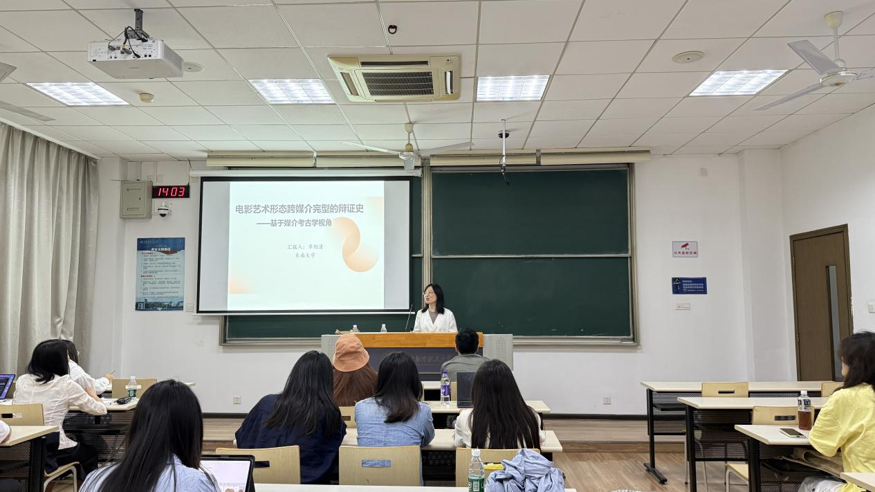 五月的江宁阳光明媚,微风和煦。29日下午,东南大学艺术学院博士生导师章旭清教授应我校艺术学院邀请,为师生带来一场“电影艺术形态跨媒介完型的辩证史——基于媒介考古学视角”的专题讲座。板俊荣教授主持了本次讲座,广播电视艺术学学科负责人罗良清教授担任对话专家,现场学术氛围浓厚,新闻传播系讲师马健、高娜及将军路校区四十余位同学共同出席本次活动。