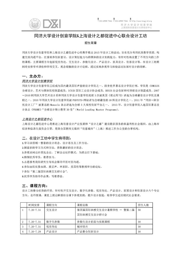 同济大学设计创意学院&上海设计之都促进中心联合设计工坊―招生简章