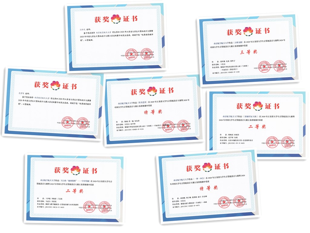 日前,由教育部高等学校计算机类专业教学指导委员会主办的“2020中国大学生计算机设计大赛江苏赛区竞赛”已落下帷幕,我院美术系、新闻系师生通力合作,从设计、动画、微电影、微课创意等多个赛道积极组织参赛,经过近两个月作品打磨和精心指导,我院参赛作品最终在全省84所高校907组作品中脱颖而出。孙国栋等同学创作的《一梦•四合》获动画类特等奖,陈瑜等同学创作的《隹其迭矣》获平面设计类特等奖,王伊依等同学创作的《飞行的“秘密指挥”——空中交通管制》以及陈婉柔等同学创作的《探秘星辰大海》分获微课与教学辅助类和信息可视化设计类二等奖,张恒康等同学创作的《古桥文创》获平面设计类三等奖。汪浩文、范学智两位老师获优秀指导教师奖,才漪获优秀管理员奖。