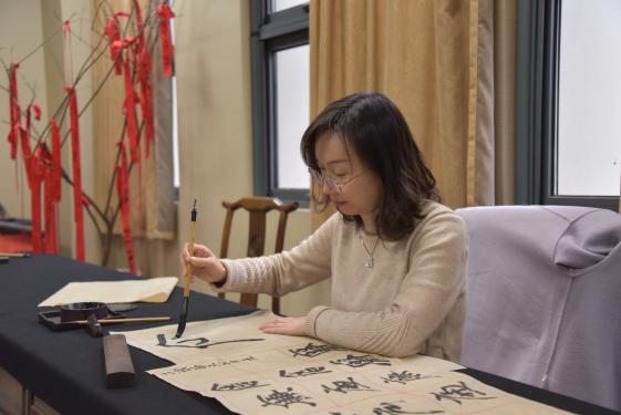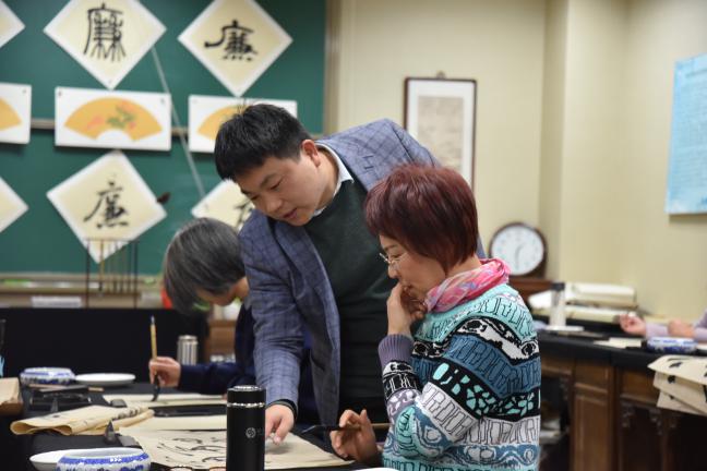 艺术学院党委副书记(主持工作)张钟勤老师也来到现场,与学员们共同感悟书画创作中的“廉”文化。她在致辞中,充分肯定了砚湖书院在“12.9国际反腐败日”开展“以笔墨为器,书写廉洁”主题教育活动的意义。防范和打击腐败是全世界的共同事业,我党历来重视预防和惩治腐败,今年学校以召开反腐倡廉专题党课为标志,启动了“清廉南航”宣传教育周活动,常态化、集中式的廉洁教育氛围已然逐步形成。砚湖书院的师生们是校园廉洁文化建设的积极参与者,自书院成立以来,累计有36个部门755人次教职工来到书院学习,共创作书画作品3800余幅,丰富了教职工文化生活,也为校园廉洁文化的建设提供了一个新的载体。她祝愿老师们能永葆书画热情,创作精品,共同为致力营造崇廉尚俭的校园文化生态贡献力量。