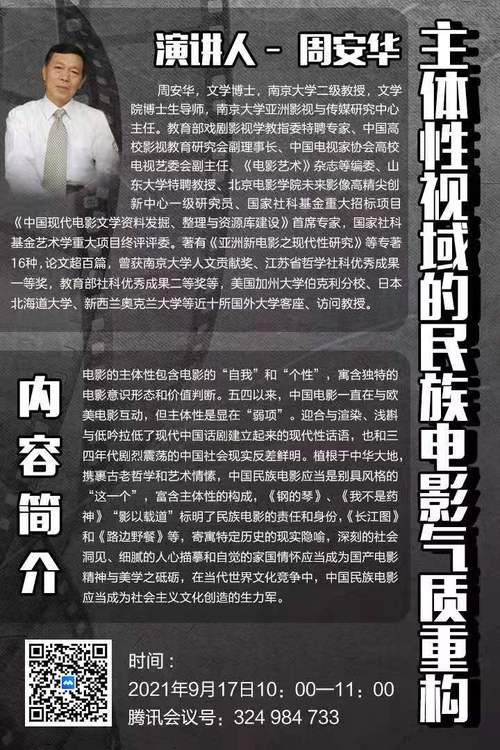 学术讲座预告:主体性视域的民族电影气质重构