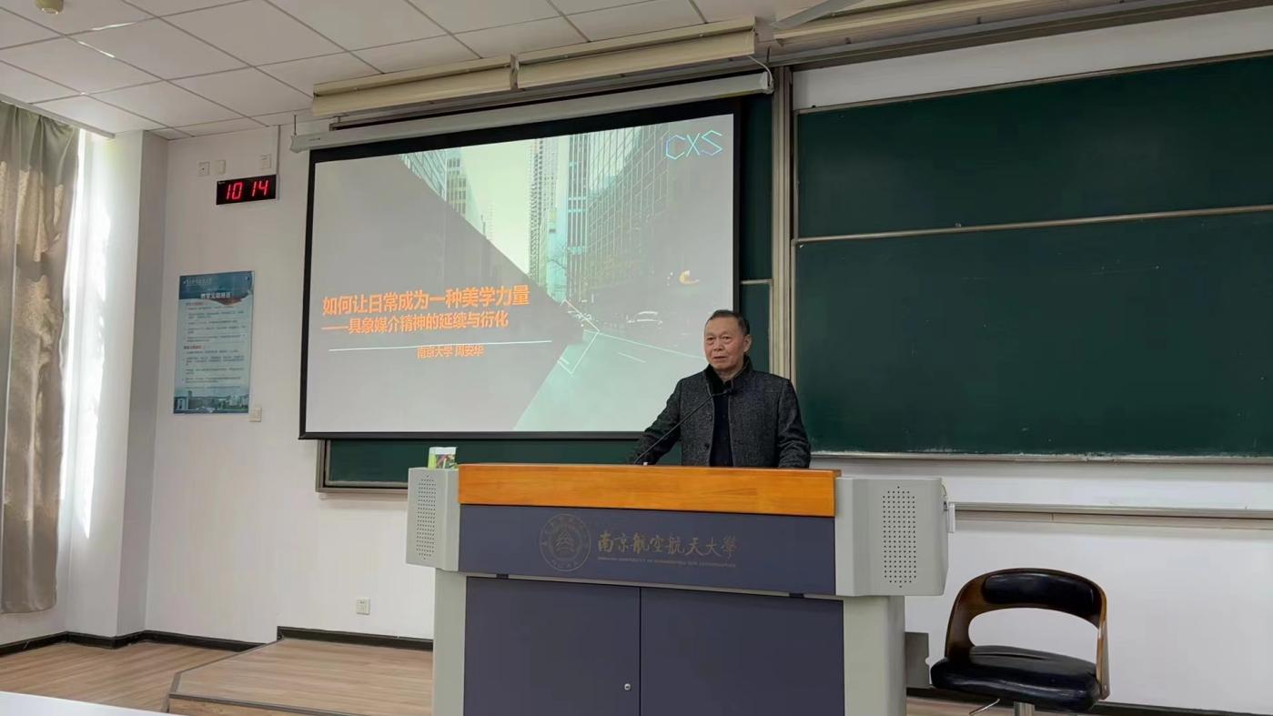 三月的南京航空航天大学校园樱花烂漫,春意盎然。艺术学院“空天艺海·大师引航”系列讲座有幸邀请来了山东大学特聘教授、山东大学人文社科青岛研究院博士生导师、南京大学二级教授、南京传媒学院副校长周安华先生;3月29日上午,在将军路校区D1110教室为我校师生做了一场“让日常成为一种美学力量——具象媒介精神的延续与衍化”的专题讲座。