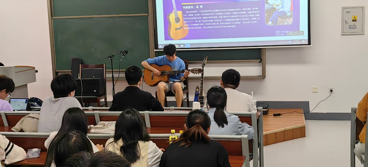 4月23日晚18:45,著名吉他演奏家、作曲家湛辉先生应邀在我校天目湖校区举办了主题为“从演奏到创作”的美育分享活动,深受同学们欢迎。