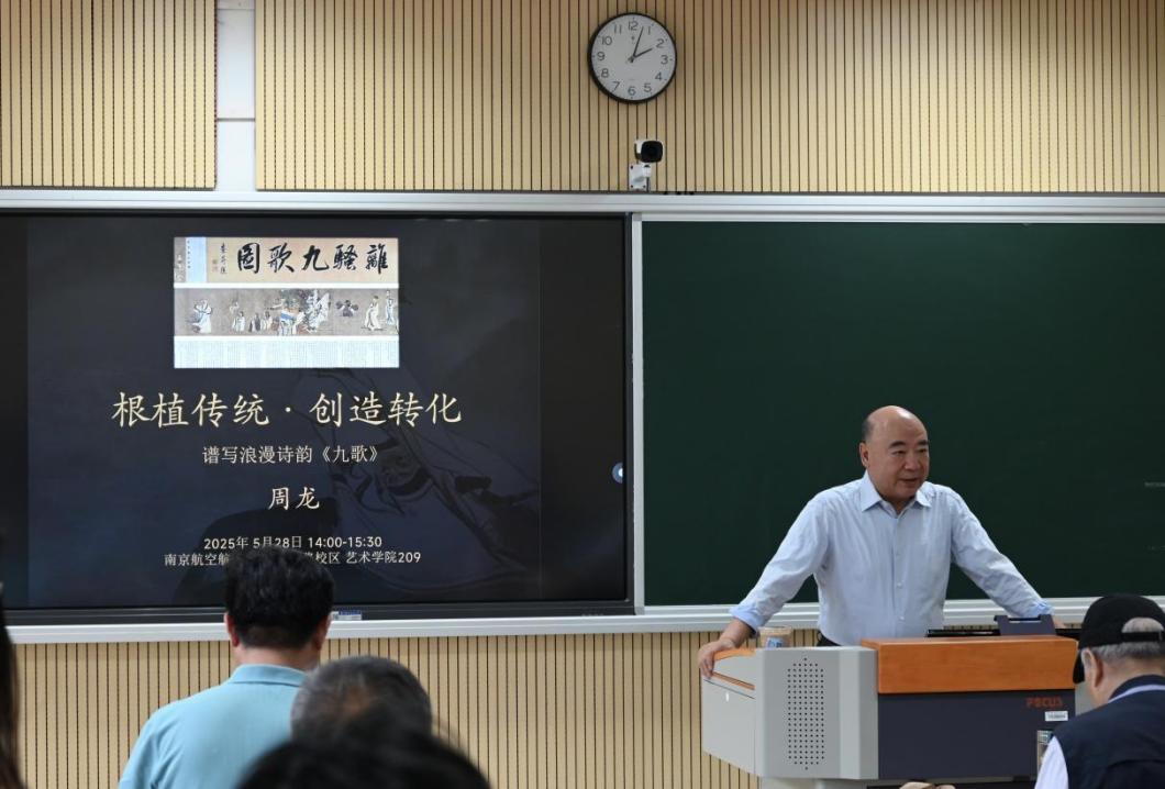 2025年5月27至28日,为积极推进音乐表演国家一流专业建设,“江苏音乐创作的民族性与文化认同”学术研讨会在南京航空航天大学艺术学院举行,此次活动由南京航空航天大学艺术学院主办,江苏省音乐家协会创作委员会协办。会议邀请国际著名华人作曲家、普利策音乐奖得主周龙教授作专题讲座。本次会议同时还邀请了南京艺术学院乔惟进教授,南京艺术学院博士生导师、江苏省音乐家协会创作委员会主任王建元教授,南京师范大学作曲专业带头人吕振斌教授,上海艺术研究中心陈洁,南京晓庄学院作曲教研室主任陈晓光副教授,南京信息职业技术学院艺术专业负责人陈雷副教授等嘉宾莅临现场。艺术学院院长板俊荣,音乐系教授黄舒拉,音乐系副主任孙晓烨及学生代表出席会议。