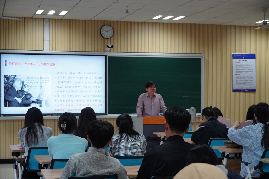 10月14日上午,南京航空航天大学艺术学院在209教室举办了一场主题为“跨界思维与跨媒介叙事”的学术讲座。本次讲座特邀国家级人才计划哲学社会科学领军人才、东南大学首席教授龙迪勇担任主讲人,板俊荣院长主持讲座,艺术学院、物理学院、航天学院和外语学院等六十多名研究生参加了本次学术活动。